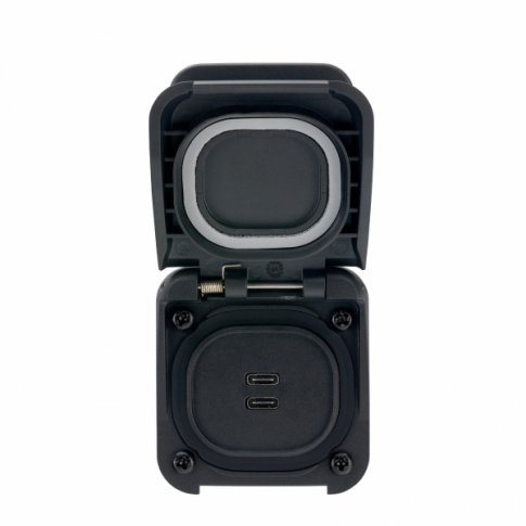 Engineered for harsh marine environments, Ventura Series features a spring-loaded, IP68-rated cover that stays shut to keep water and dust out, and flips open to lock cables in securely when charging. Built from marine-grade, UV-resistant materials with a 316 stainless steel hinge, it’s fully washdown-ready and built to last.